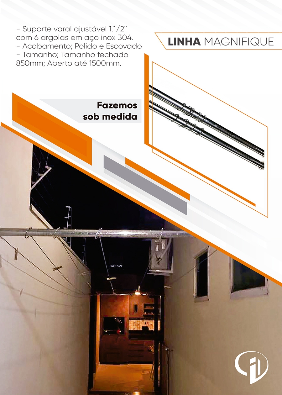 – Suporte varal ajustável 1.1/2 com 6 argolas em aço inox 304